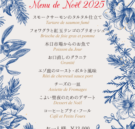 お一人様 ¥13.000(サーヴィス料、消費税別)